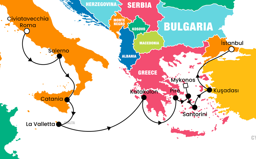 Gemide alacağımız kahvaltının ardından arzu eden misafirlerimiz geminin ekstra olarak düzenleyeceği Mosta & Valletta & Mdina & Marsaxlokk turumuza katılabilirler. İlk durağımız Mosta. Bu turumuzda Avrupa'nın üçüncü büyük kubbesine sahip olan Santa Maria Assunta bazalikasını ziyaret ediyoruz. Kubbesinin dış çapı 56,2 metre olan bu devasa bazalika’nın iç resimleri özellikle ressam Giuseppe Cali tarafından yapılmış. 1942 yılında 2. Dünya savaşında Alman Nazi uçakları tarafından atılmış olan ve kubbeyi delerek kilisenin zemine saplanan ama patlamayan 200 kg ağırlığındaki bombanın replikasını görüp kilisenin iç ve dış mimarisi hakkında bilgi alacağız. Daha sonra ise meşhur dizi Game of Thrones’un birçok sahnesinin çekildiği doğal set olan Malta’nın eski başkenti Mdina’yı ziyaret ediyoruz. Sessiz şehir olarak bilinen bu Orta çağ şehrinin dar sokaklarında gezerken muhteşem Saint Paul Katedrali, 13.yüzyıldan kalma Maltanın asil ailelerinden Falson ailesinin inşa ettirdiği Falson Malikanesi, Barok tarzda 17.yüzyılda inşa edilmiş Karmelite Manastırı, Vilhena Sarayı ve Mdina’nın eski evlerini göreceğiz. Sonrasında turumuza “Marsaxlokk” isimli balıkçı köyünü ziyaret ederek devam edeceğiz. Luzzo isimli Malta’ya özgü renk ve dizayna sahip ufak şirin balıkçı kayıklarını sunduğu manzarayı kaçırmamalısınız. Aynı zamanda açık bir pazar kurulan bu şirin balıkçı köyünde serbest zamanınızda arzu eden misafirlerimiz taze balık ve deniz mahsüllerinden oluşan menülerin olduğu yerel restoranlarda öğle yemeğini alabilmeleri için serbest zamanımız olacak. Serbest zamanımız sonrası Valletta’ya doğru yola çıkacağız. Valletta şehir turumuzu gerçekleştireceğiz. Valetta Avrupa Birliği Bakanlar Kurulu tarafından 2018 yılı Avrupa kültür başkenti olarak seçilmiştir. Turumuz esnasında muhteşem surlarla çevrilmiş Valetta şehrini dışarıdan görme fırsatımız olacak. Otobüsle yapacağımız turdan sonra rehber eşliğindeki tur ile başkent Valletta’nın canlı sokaklarını gezerek şehri keşfedeceğiz. İlk durağımız bu görkemli şehri çevreleyen savunma surlarının üst bölümünde yapılmış olan Barracca Bahçeleri olacaktır. St. John şövalyeleri tarafından yapılmış olan bu bahçeler aynı zamanda Büyük Liman’ın ve surlarla çevrilmiş olan 3 eski şehrin de muhteşem manzarasına sahiptir. Turumuzun bitiminde gemimize geri dönüyoruz. Akşam yemeği ve konaklama gemide.