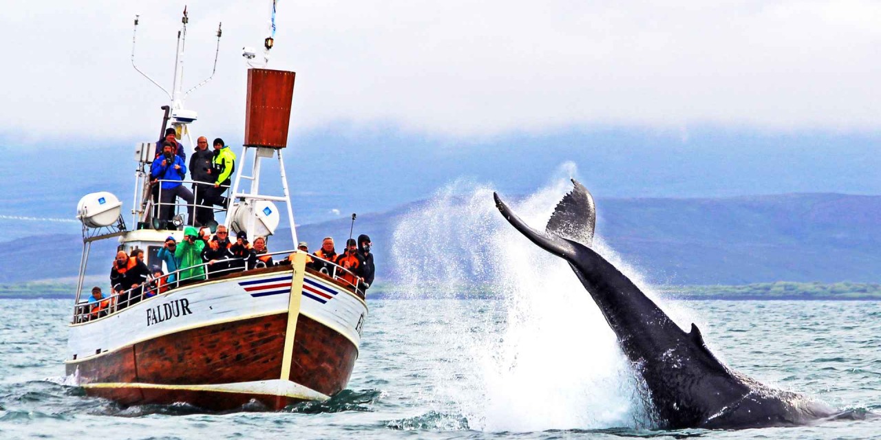 Sabah kahvaltının ardından İzlanda’nın kuzeyindeki küçük balıkçı kasabası Husavik’e doğru yola çıkıyoruz. Yol boyunca göller, yosunla kaplı lav tarlaları ve buhar yükselen tepeler eşliğinde ilerliyoruz. Husavik limanına vardığımızda, sessizliğin yerini martı çığlıkları ve tuzlu rüzgârın sesi alır. Burada geleneksel ahşap teknelere binerek Atlantik’in derin sularına açılıyoruz.