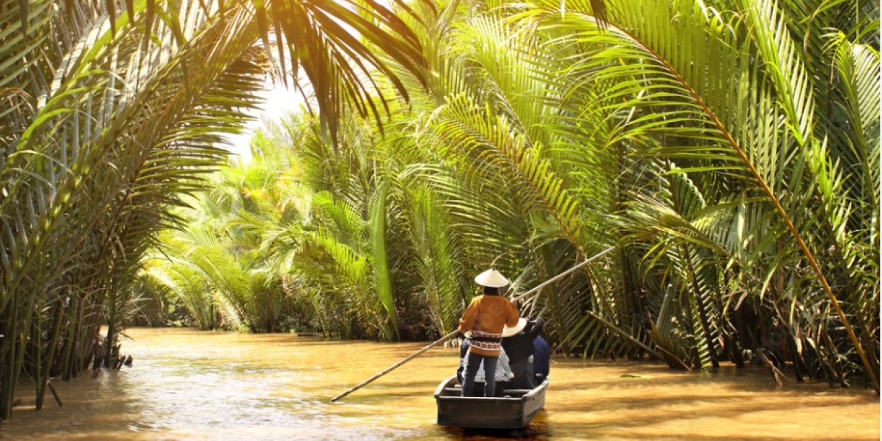 İç içe geçmiş kanallar Mekong Deltası'nın can damarıdır fakat birçok kanala yalnızca küçük teknelerle erişilebilmektedir. Adeta bir labirent oluşturan bu kanallara ulaşabilmek için palmiye korusunun içinden geçen ve küreklerle ilerleyen yerel bir sampan teknesine bineceğiz.